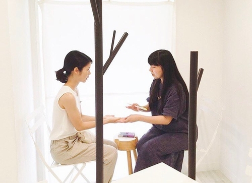 じゅんこさんは昨年3月に開催した「omotoの身のまわり展」にも参加していただいた【手のひら鑑定士】。という名前があるかはわかりませんが、手のひらを見ていろいろなことを教えてくれる人。手相といえば生命線やら何線やら、なんかちょっとコワいと感じている人もいるかもしれないんだけど、じゅんこさんの鑑定は終わった人誰もがどこかすっきりと、そして目力増して前を向いているのが印象的。「よし、がんばろう!」と力をもらえるんですよね。