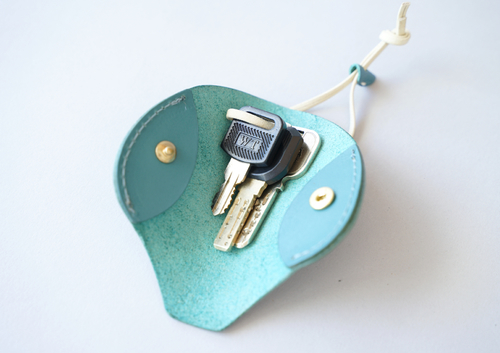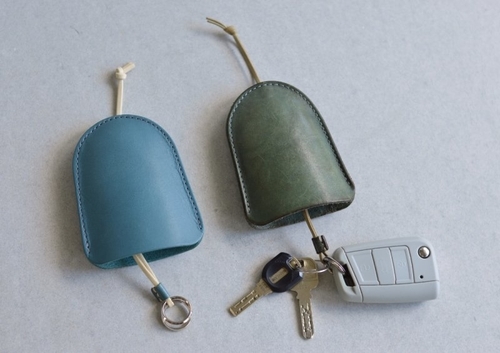 直接革紐に鍵を通して収納します。小ぶりでコンパクトな収まり。(車のリモコンキーなどは収納できないため、家鍵などシンプルな鍵向け)