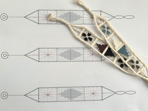 このワークショップでは、事前にベースの枠と芯糸をセッティングされたもの(白いところ)に、針を使って色糸を織り込んでゆき、バングルに仕上げます。と、言葉で説明をするとやや分かりにくいのですが、南米パラグアイの伝統的なレース刺繍、「ニャンドゥティ」はご存知の方もいらっしゃるかもしれません。(私はcoicaruさんに出会うまでその言葉も知らなかった)