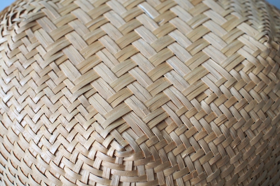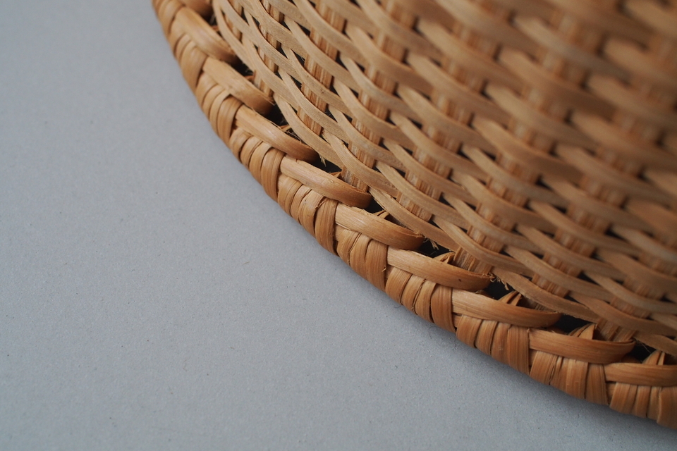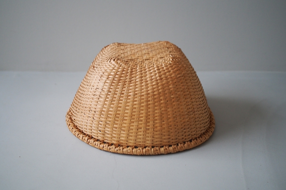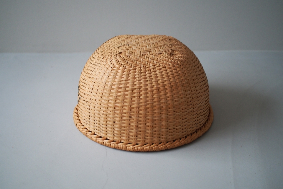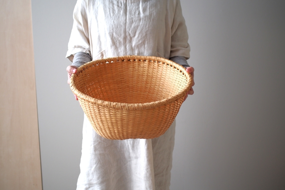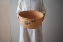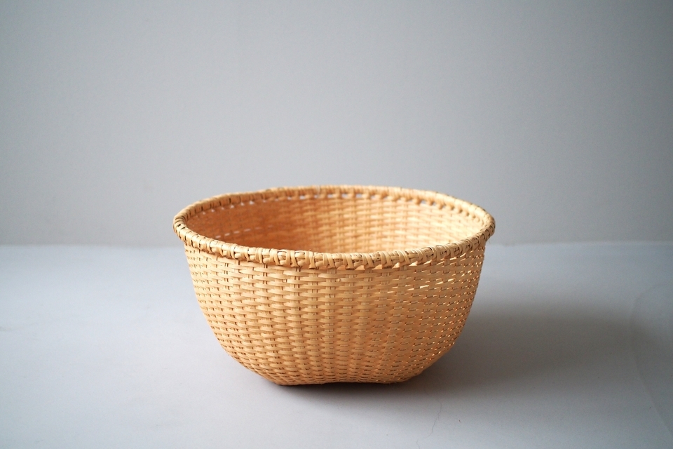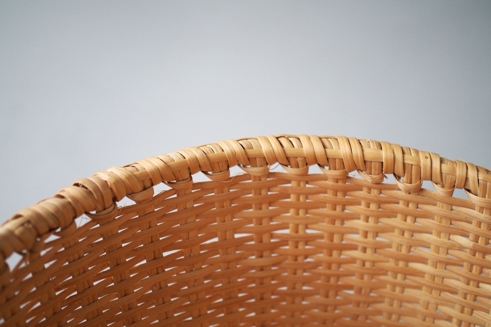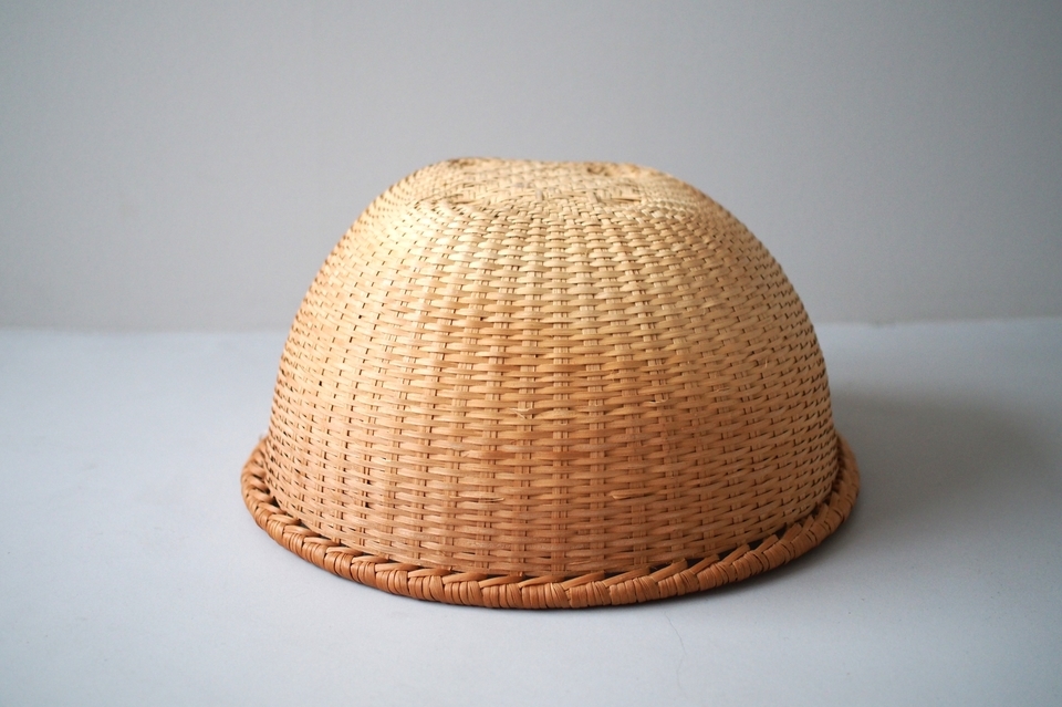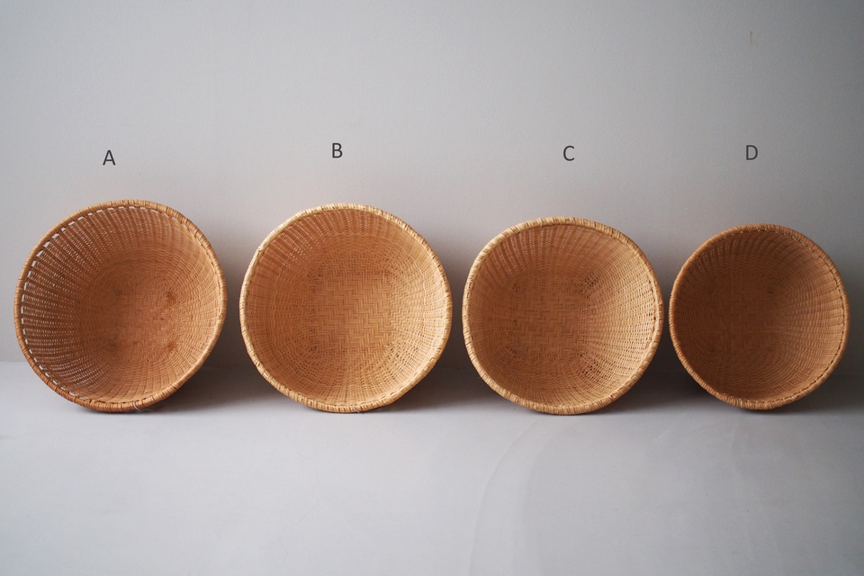 【B】底の面積が4つの中ではいちばん広い形。全体的に立派な太いヒゴを使っています。底に小さな黒い汚れが少しあります。(直径 約39.5cm・高さ 約19cm)