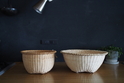 大き目サイズのこちらのざる。米とぎざると同じ編み方ですが、上に向かって広く作ってあります。ボリュームのあるものをザザッと洗うのに便利。季節仕事にそれぞれ使いたいですね。味噌作りの大豆洗い、梅仕事の梅洗い、葉物を洗うのにも。もちろん、水周りだけでなくいろいろな場面でお使いください。