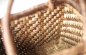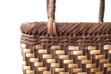 白っぽい色の方が胡桃の木の皮の外側。茶色っぽい方が内側。表と裏を組み合わせて編むことで模様にしています。