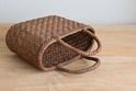 定番のあじろ編みですが、底から口部分まで楕円型に立ち上がり、角がないこと、コンパクトな大きさとも相まって、全体にやわらかく可愛らしい印象に仕上がっています。