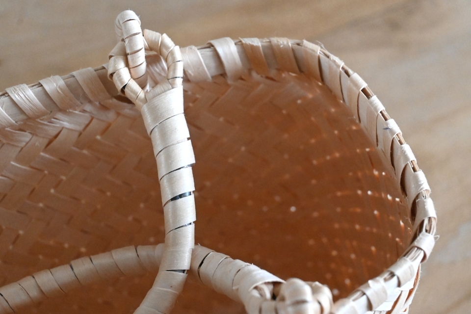 ●縁を巻くときの穴によりひごに割れが見られるものもございますが使用に問題はありません。工程上発生しうるものとご理解ください。