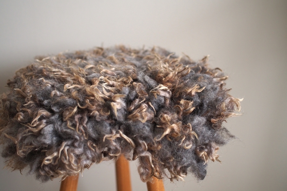 グレーに少し明るいブラウンのカールした毛がポイントに。インテリアとも合わせ合わせやすそうな色合い。